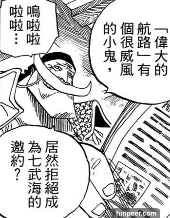 至於其他七武海,仔細回想也可以發現,大部分都在還沒成名的時候就被邀請進來了。 原因有二:實力已經強大的海賊有可能不屑於聽海軍命令,只有還在成長期的海賊才有可能跟海軍合作。把有潛力的海賊收編,能防止他們造成麻煩,還能增強海軍方的戰鬥力。總之,七武海確實是七個強大的人組成的,不過海軍在挑選他們的時候,並非以他們的實力進行選擇。