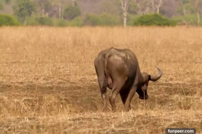 獅子們早已筋疲力盡,最後選擇了棄牛而逃,原本以為要淪為盤中餐的公牛,反而撿回一命!