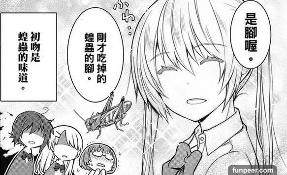 额,刚刚分的水其实是妹子嚼蝗虫之后的汁液。怎么样?蝗虫味的初吻,没试过吧?——