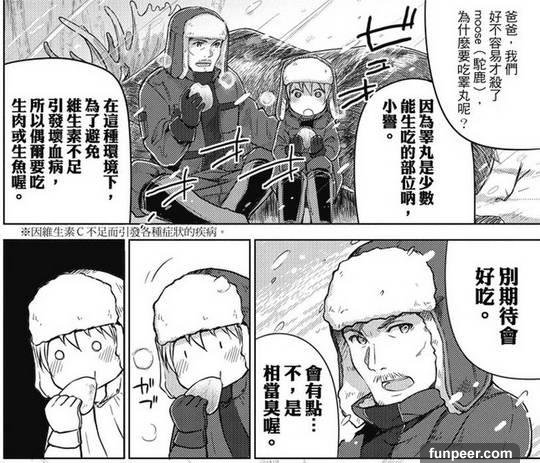最开始女主吐槽很臭的“蛋蛋”,其实是她和老爸在野外干掉驼鹿之后,割下的战利品。据说生吃驼鹿的“蛋蛋”能补充维生素哦——
