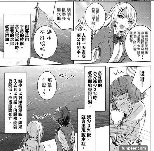 可这四个人漂在海上,既没有食物也没有淡水,而且还在太阳底下暴晒。照这样下去,她们四个很快就要脱水嗝屁咯——