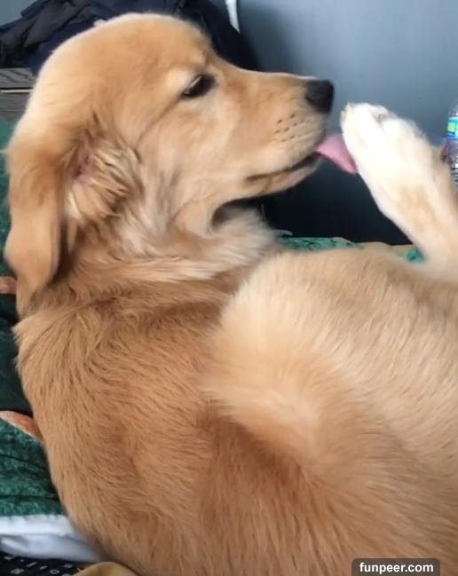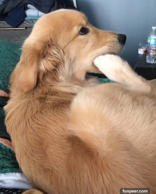 狗子們對於有異味的東西總保留十二分的興趣,垃圾桶、臭襪子,鞋子等等都是它們最“嚮往”的玩具,這隻金毛狗子也不例外,它撓臉時把爪子伸進了自己的嘴裡意外發現了“新大陸”,簡直讓人捧腹大笑~▼「抓抓抓!抓抓抓!」