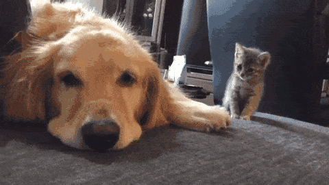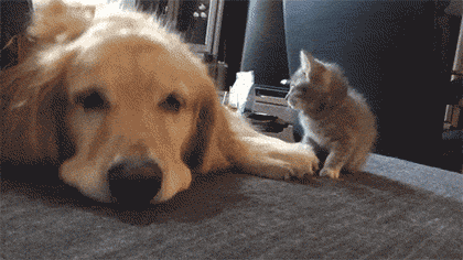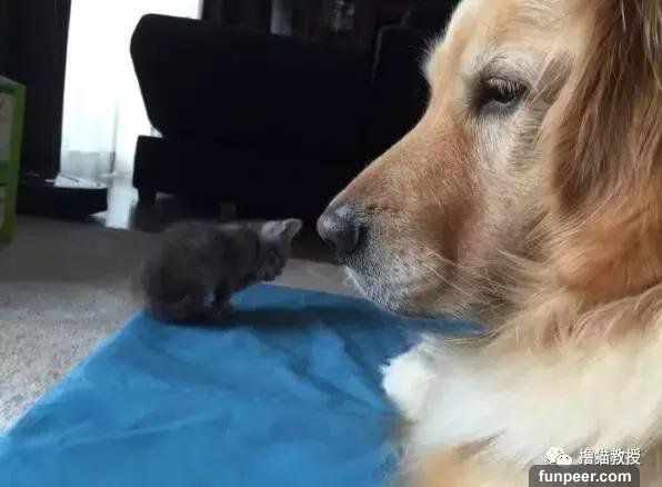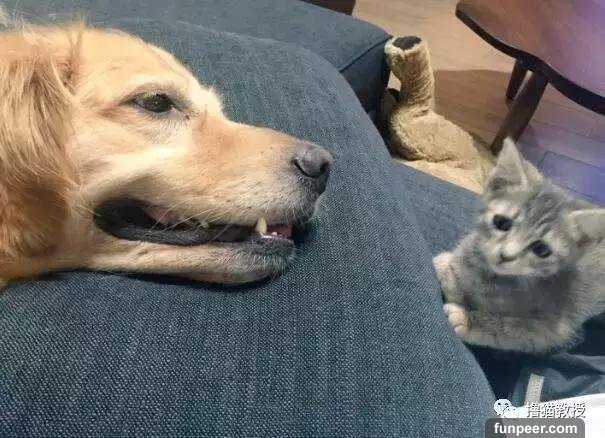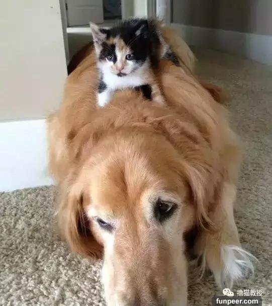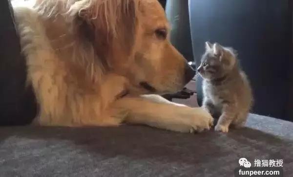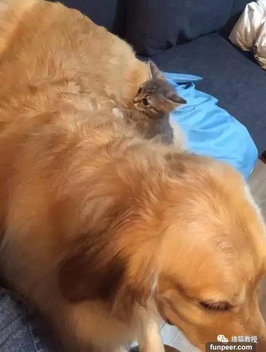 第一次見面,小貓和大金毛竟然這麼溫暖,很快就成了好朋友,主人簡直不敢相信這樣的畫面。就像第一次見面那麼友好,以後的日子裡,小貓和大金毛的相處一直很和諧。▼