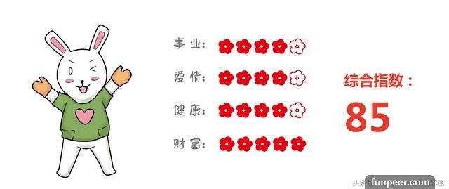 生肖兔活力兔可以通過朋友認識不錯的商業夥伴,為你的事業發展提供嶄新的契機,並有機會達成合作,為你們的未來謀求共同發展。工作中的積極表現和他人的認可讓你懷抱更大的野心,激勵著你不斷的提升自己。明天的財富運勢非常旺盛,可以進行理財投資、商業洽談等促進事業發展之事。相愛的人可以到風景秀麗的地方一起去約會,在美麗的景色中留下美好的回憶。