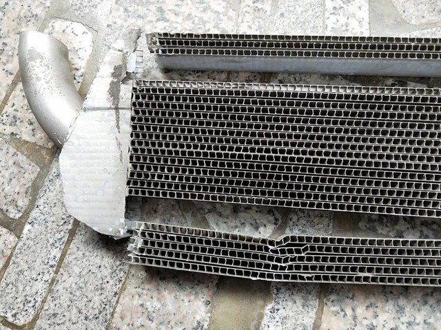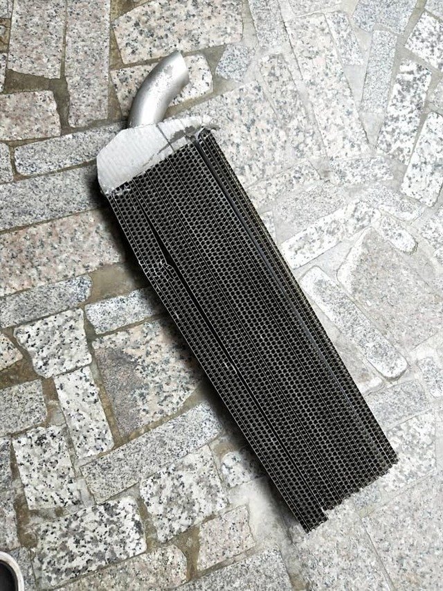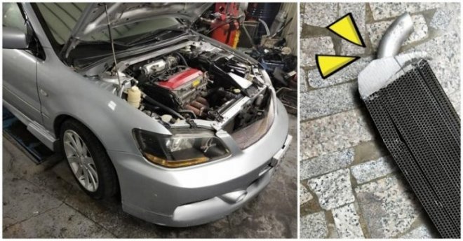 她心想奇怪,汽車零件遠看並無異狀,打開引擎蓋靠近一看「機油冷卻器真的越看越奇怪」一拆下來才發現「