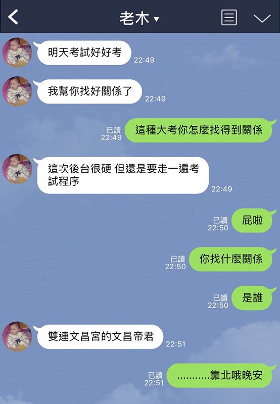 我媽在考試前跟我說他找了很硬的後台?原來是...