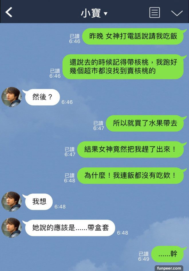 「女神說要請我吃飯還叫我帶核桃來」,沒想到我還是太嫩了啊...