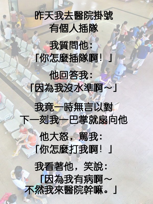 醫院有人插隊還一副無所謂,我直接賞他一巴掌後說...