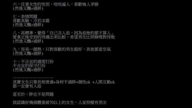 一,醜(真的醜的那種)+過胖(80kg以上)