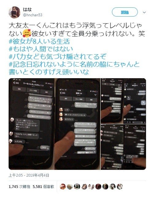 看到這些恐怖的LINE對話和「同時交往8女還能不錯亂」的套路後,Hana無奈表示:「到底是怎麼交到8個女友的?感覺太勉強,會過勞吧!」