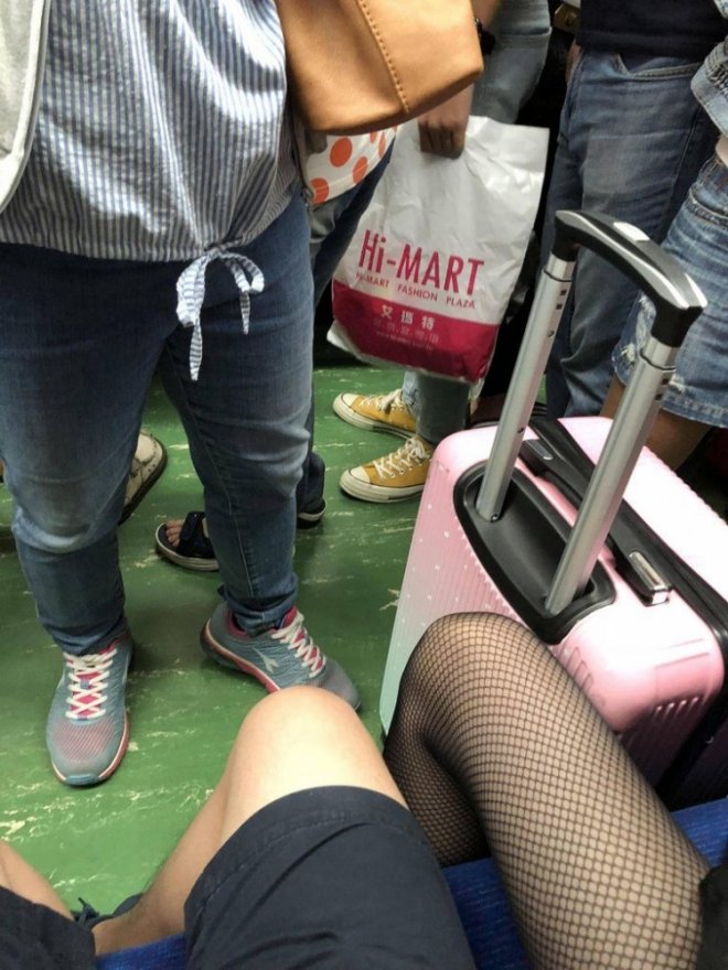 一位網友搭火車北上,坐到一半一位提著行李廂的黑網襪女生坐到他旁邊