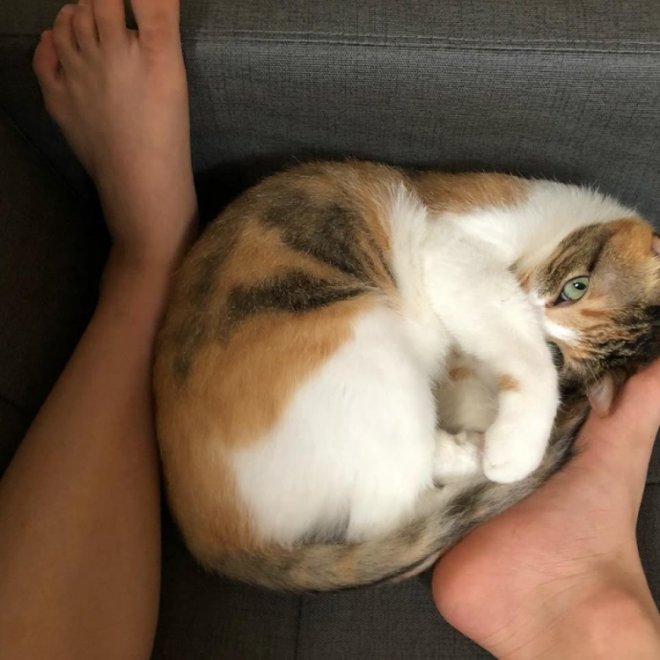 像是如果換了床單、或洗澡,貓咪就會產生焦慮,因此會藉由聞主人的味道,來緩解這焦慮感,而腳就是最熟悉的原味XD