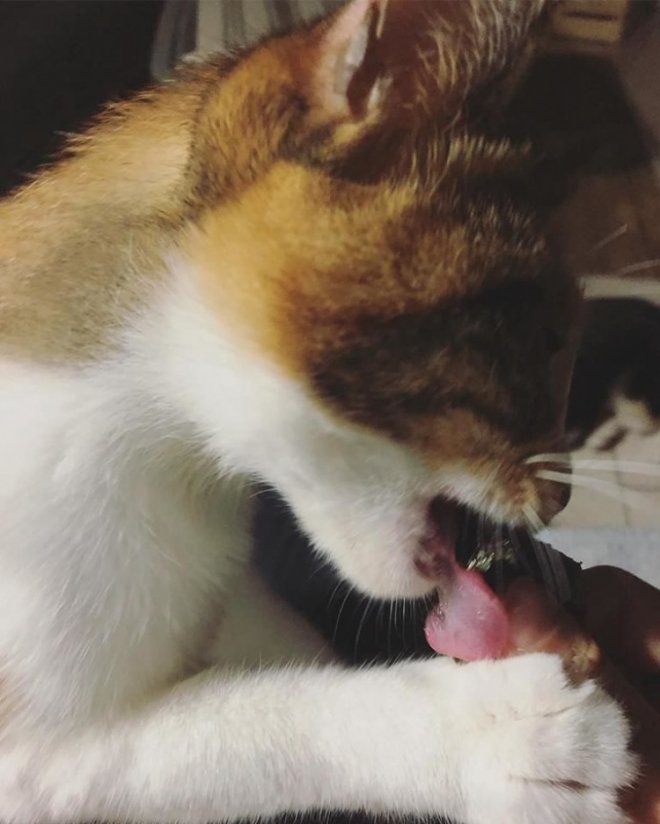 貓咪一直都很愛乾淨,但是不知道為啥...特愛穿完一整天的腳味啊!