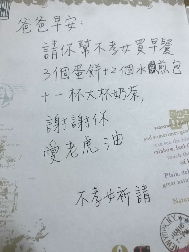 大吵後,女兒寫紙條給爸爸:「請幫不孝女買早餐!」沒想到爸爸的「蠢呆誤會」讓他們秒破局