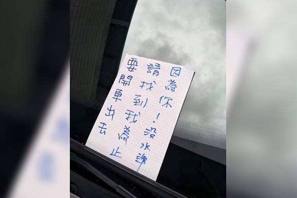 「要開車出去請找到我為止,因為你沒水準!」原PO留下紙條表示,對方連電話都沒有留,由於小孩要趕回日本讀書,她也只好先把車庫鐵門拉下,關上對方的車子;事後,她也說,該名車主有聯繫她說,因為要去臺北玩,看到沒人停就停了。