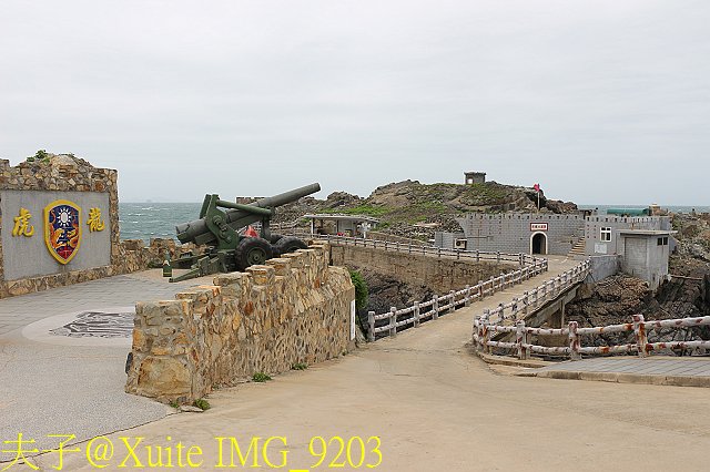 菜浦澳據點,位於馬祖西莒東北角的一座陸連島礁上,巍峨堡壘聳立在地勢起伏陡峭的礁岸邊,跨海橋 (鎮海橋) 對面的高地上還配置一門八吋榴彈砲,照壁上的龍虎部隊隊徽,宣示著這是軍事據點,讓人很震撼。