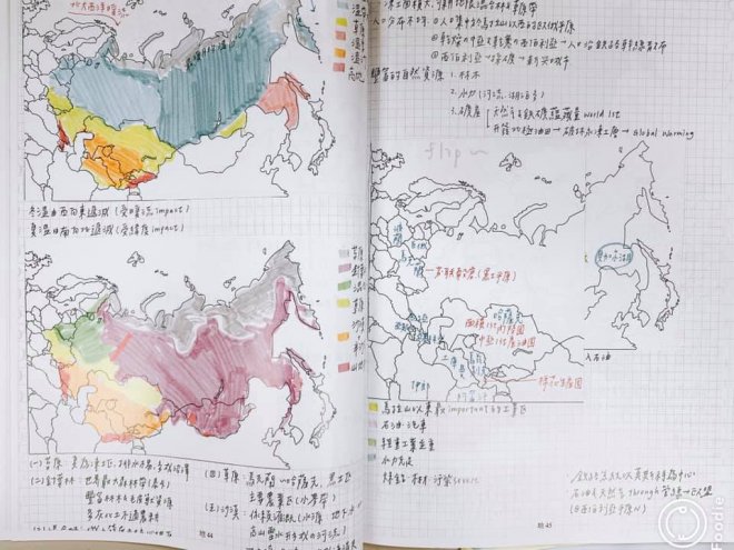 ▼歐陽立中在臉書上說,上課時他拿出「北一女學霸筆記」,國文、英文、歷史、地理與公民全套。同學們覺得很新奇,眼睛都亮了。他形容說:「像是鑲滿寶石的無限手套。一握緊,就像要宰治人生那樣。」