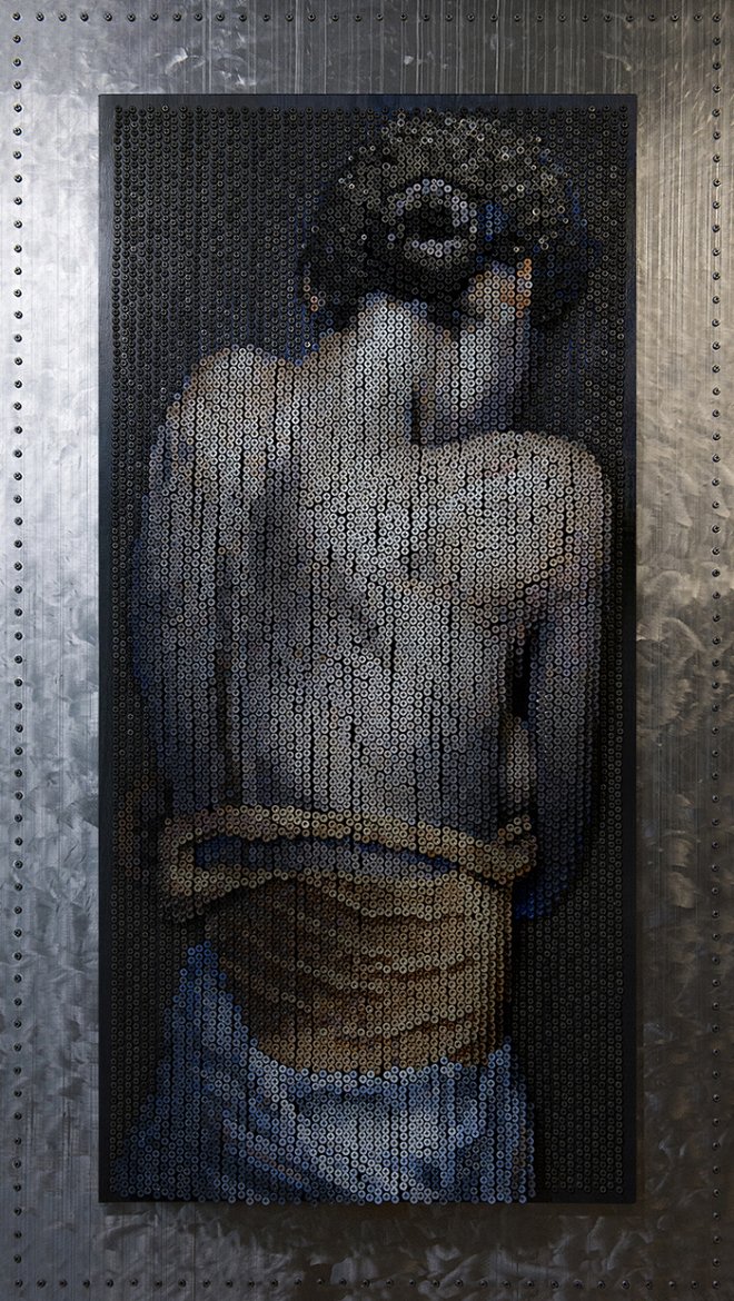 他公開「花200個小時把2萬顆螺絲鎖在板子上」的藝術品,後退幾步看一眼視覺瞬間高潮!