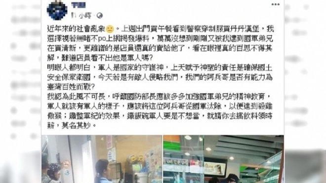 最後該網友還表示「此風不可長」,向國防部長呼籲「應該多多加強國軍弟兄的精神教育」