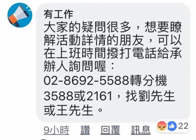 大家的疑問很多,想要瞭解活動詳情的朋友,可以在上班時間撥打電話給承辦人詢問喔: