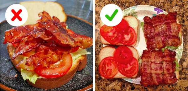 5.培根疊那麼高幹嘛?這樣三明治吃起來口感很差、而且一點平衡性都沒有!