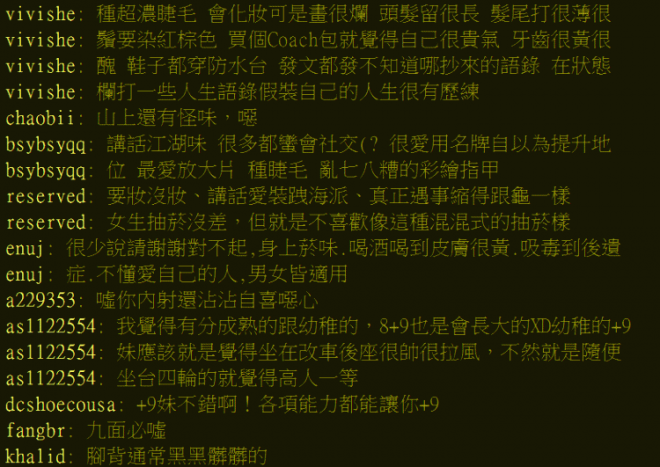 原PO因為想到自己的前女友,所以來看看有沒有符合網友定義