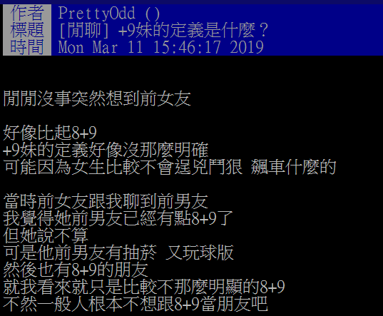 最近有網友發文問8+9妹的定義到底是甚麼?