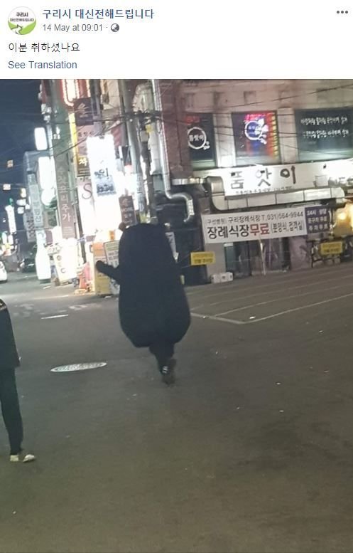 韓國近日有一單非常有趣嘅網絡熱話,事源一間店舖的「熊本熊」服裝被意外穿走,店主就拜託了Facebook專頁「구리시 대신전해드립니다」社區留言版尋人,希望事主歸還,還附上了一張「熊本熊」舉高雙手跑走的背影照,並補上了一句「這位好像喝醉了」,事主更現身回應,引發網民爆笑。