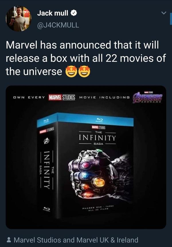 結果依然令許多漫威影迷非常緊張。在此同時世界各地的漫威粉絲也想要永遠珍藏這一份鋪陳長達 11 年的系列電影感動,現在漫威官方似乎就已經著手計畫要在未來推出「22 部超級英雄電影豪華大禮盒」商品了!