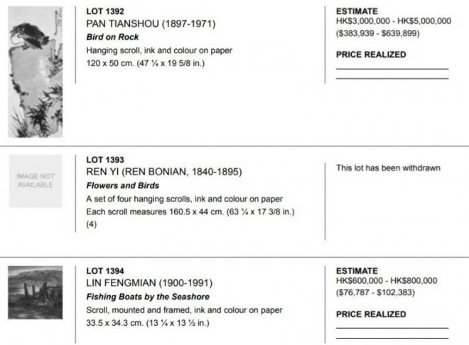 「The Culturist文化者」指,拍品編號1393、任頤《花鳥四屏》估價150萬至250萬元,當中「淡黃楊柳帶棲鴉」畫作,喺周日預展俾一名小童撕毀。