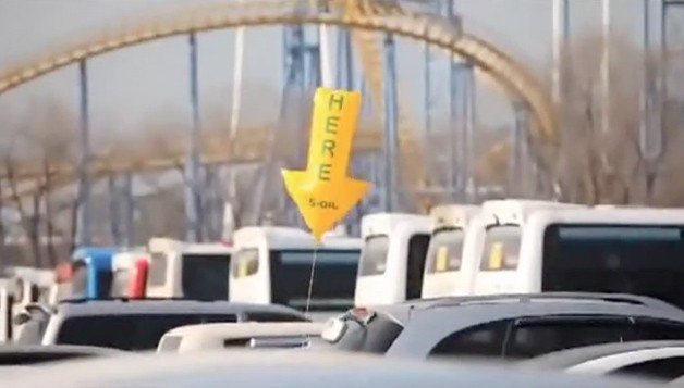 ▼這樣當車子停進車位之後,氣球就會被壓低,變的看不見了
