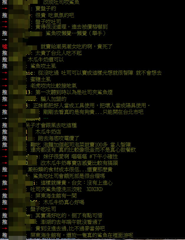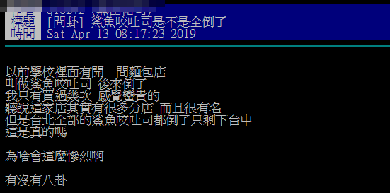 一位網友在批踢踢上PO問卦,大呼:「鯊魚咬吐司是不是全倒了?」