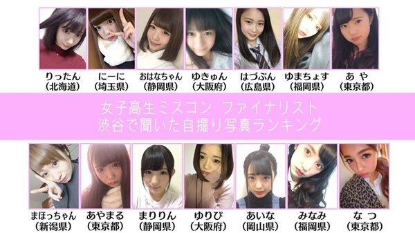 主辦單位請入選的14名女高中生分別拍下自拍美照,在由路人票選最可愛的是誰。