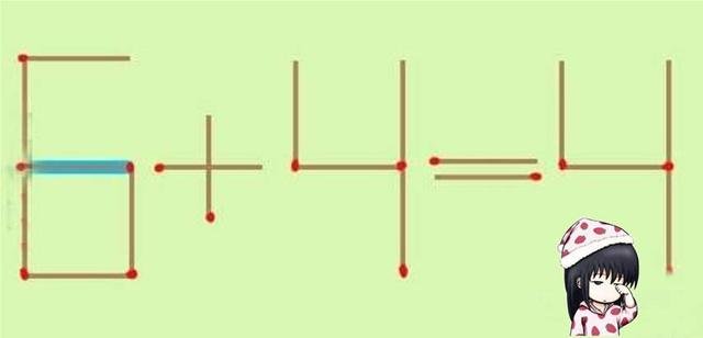 話不多說,今天我就用這些另類的趣味簡單數字題來考考各位家長朋友們,以下是由火柴組成「6+4=4」的題目,大家只需要移動一根火柴的位置就能夠把答案改正了。