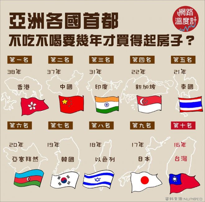 亞洲各國首都,不吃不喝要幾年才買得起房子?我都要哭了…