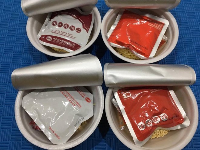 不得不說他這順序有點錯了,肉塊包應該先放在加了熱水後的蓋上先預熱。
