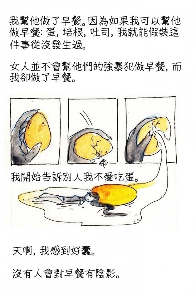 有篇十分震撼人心的漫畫在國外網站上被瘋狂地轉載,漫畫顛覆我們以往對於侵犯的認知,以受害者的角度來描述了他們內心的真實想法。這則漫畫的英文名字叫做:「Trigger Warning: Breakfast」 (觸發警告:早餐):