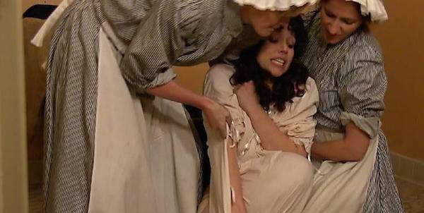 ✪娜麗成功了,她被醫生帶進紐約羅斯福島(Blackwell’s Island)的精神病院,與其他女精神病患一起接受治療。但從入院那一刻起,娜麗就受到了相當的驚嚇,因為她發現這裡的女病患都相當正常,治療人員反而才是不太正常的那群…(以下皆取自電影劇照)
