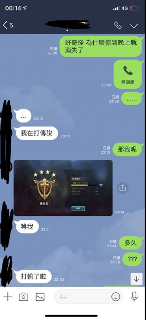 高雄這位男友,因為跟住在台中的女友遠距離戀愛,所以平常都用LINE再連絡,最近發現女友晚上時間都會消失,在他追問之下,原來是在打遊戲。