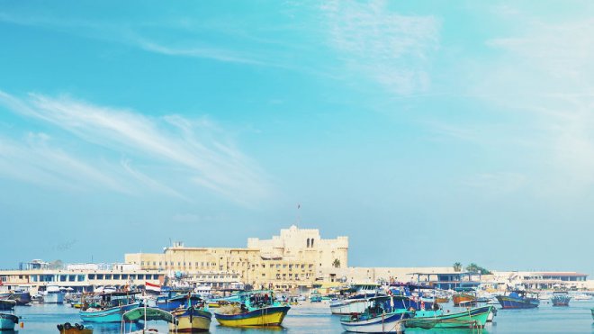 ▼燈塔位於埃及的亞歷山卓對面的法羅斯島,大約在前283年設計建造,高度約為115到140公尺。1303年和1323年的兩場地震摧毀了這座燈塔。