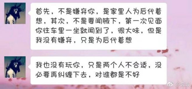 「沒有玩妳,只是覺得不合適,沒必要再糾纏下去,家裡死活都不會同意娶一個有狐臭的媳婦的。」