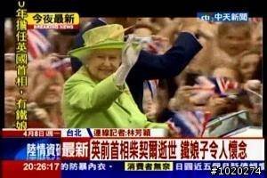 4. 報英國前首相柴契爾逝世,照片放英國女王…