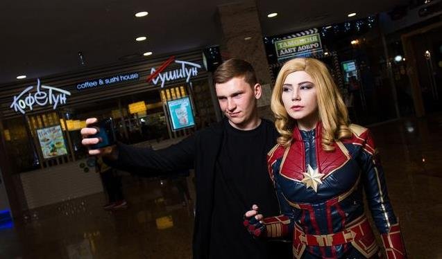 扮成「驚奇隊長」去看「復仇者聯盟4」,俄羅斯正妹被整個影院的人圍觀,網友驚呼:比驚奇隊長還驚豔