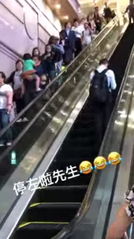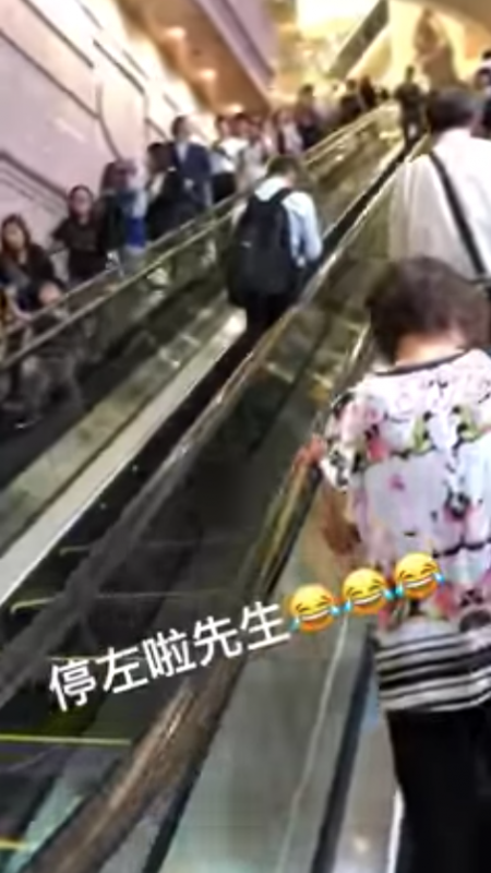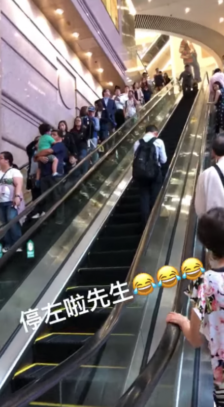 「低頭族」只顧望手機 不知扶手電梯停止運作有網民日前在Facebook「將軍澳」群組發佈一段影片,一名男子站在已暫停運作的扶手電梯中間,並拿著手機專心地看,似乎不察覺電梯已停,十分投入!簡直就是無懼世事變改,陶醉於屏幕之間!這個有趣的畫面被網民用手機拍下,配上字幕「停咗啦先生」,又以「永遠都未到系列 #掛住玩手機」作為標題,引來其他網民恥笑。