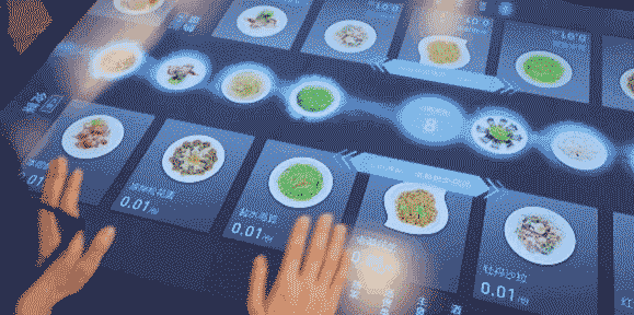 2、入座。未來智能餐廳的桌面實際上就是一張大尺寸的觸控顯示屏,顧客入座後,系統自動識別身份,然後通過輕觸桌面或手勢動作,即可打開智能點餐界面進行點餐。