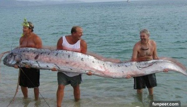這隻生物軀體呈扁狀。最終確認,這是皇帶魚,別稱白龍王、地震魚等,是海洋中最長的硬骨魚,體長可達十幾米。而捕獲的這兩條皇帶魚是目前為止世界上最長的硬骨魚,竟然長達15.2米左右,這是比較少見的情況。