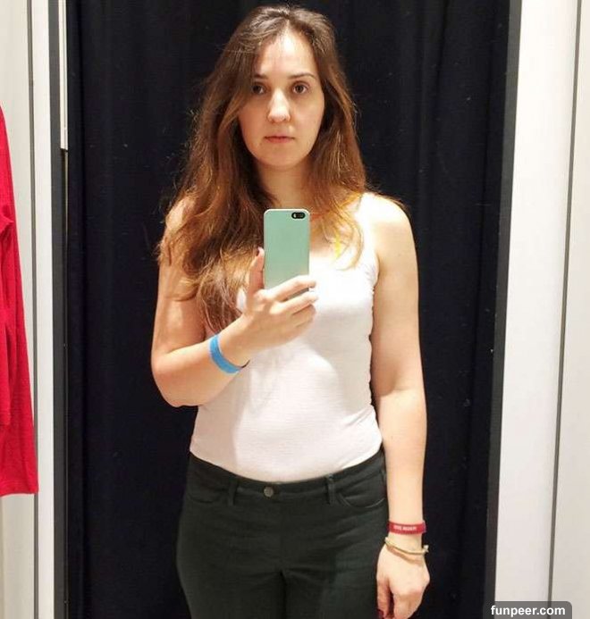 到底有什麼差別! ▼俄羅斯部落客Inna決定找出其中的秘密。她先在家拍了張照片,然後穿同一件衣服,去11間服飾店的試衣間拍對比照,看看結果有什麼不同。