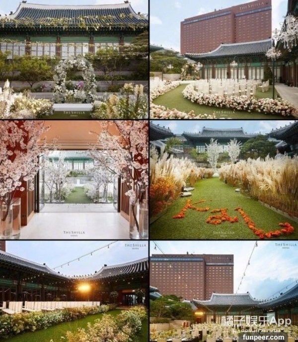 就連舉辦婚禮的酒店都選擇了安保最好的新羅飯店 , 在 1 樓戶外迎賓館 , 是傳統的三合院風格 , 場租就要 200 萬元 ( 約 44 萬人民幣 ) 起 。