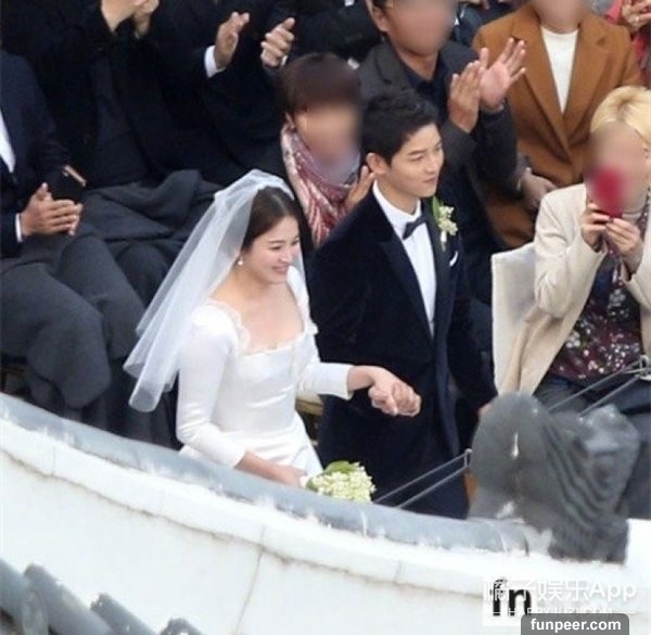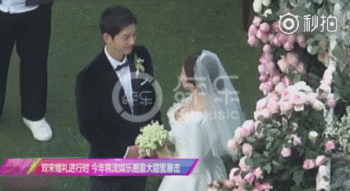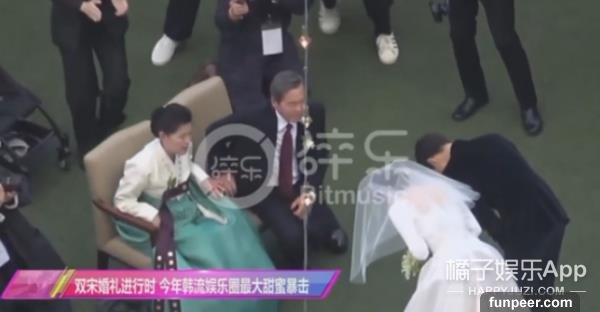 15點54,新人分別向雙方父母鞠躬,宋慧喬在看到媽媽和宋仲基擁抱的時候,哭了…