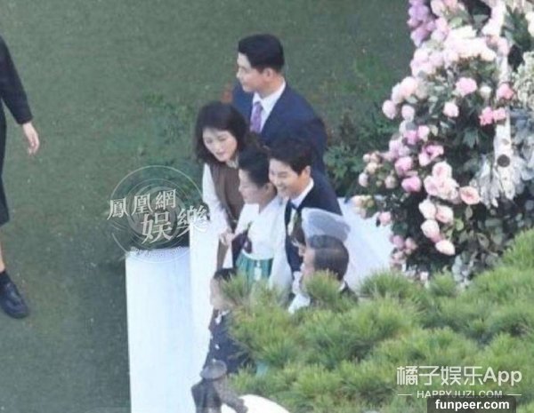 喬妹也在家人的陪伴中出現在婚禮現場 , 正在和宋仲基說話 。